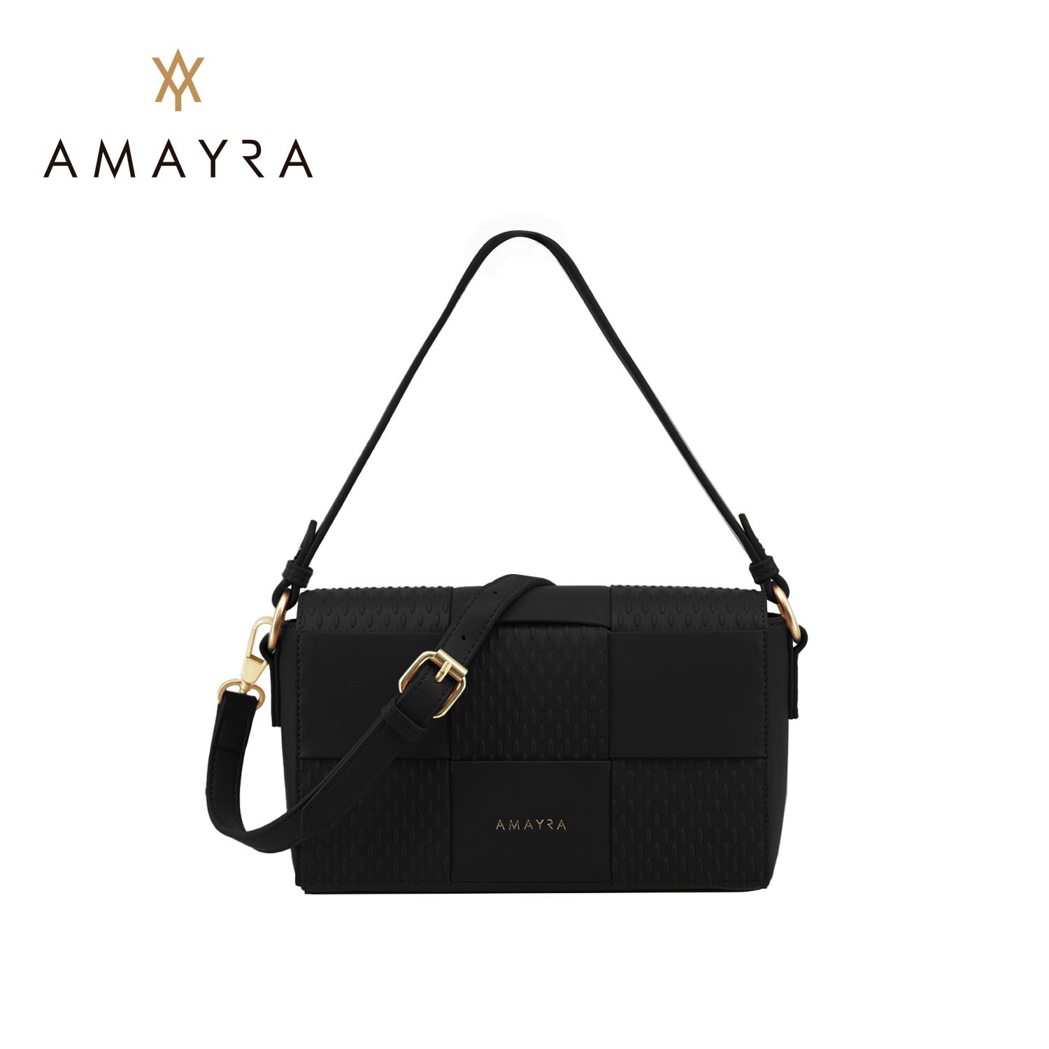 Correa regulable y desmontable, que permite usarla como cartera de mano o bandolera.