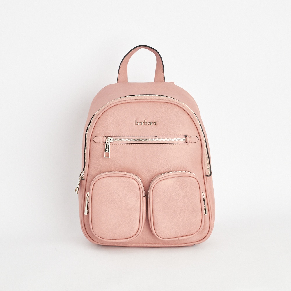 Descripción: Altura: 32cm Base:26cm Prof: 11cm Mochila de p.u con tres bolsillos delanteros Tres bolsillos internos