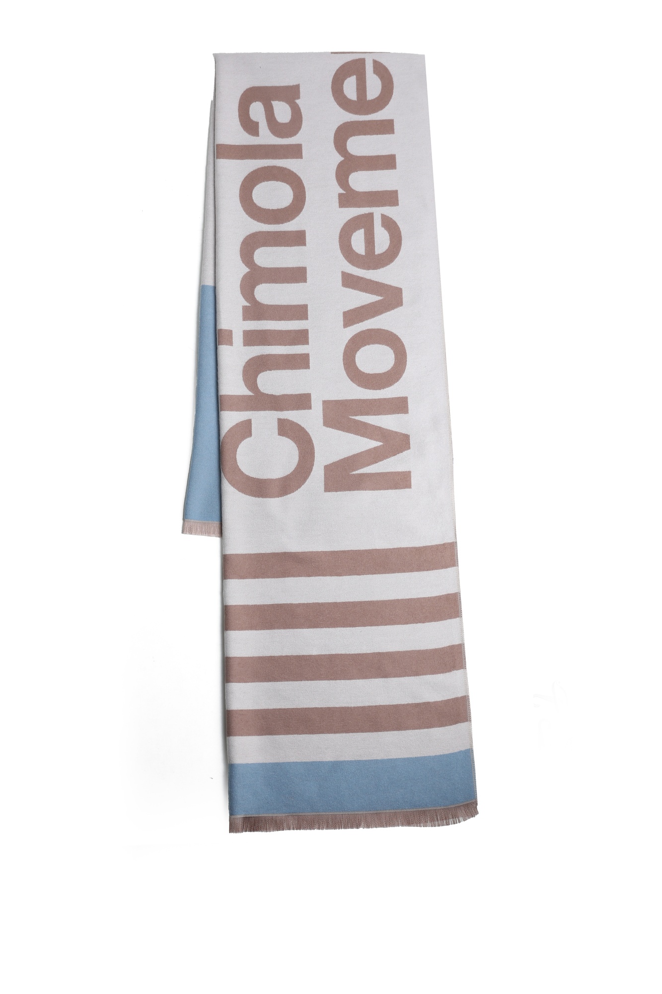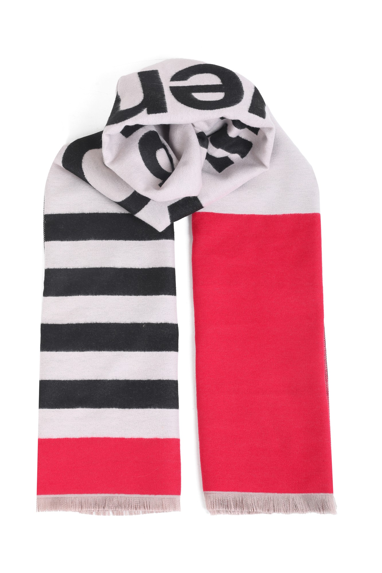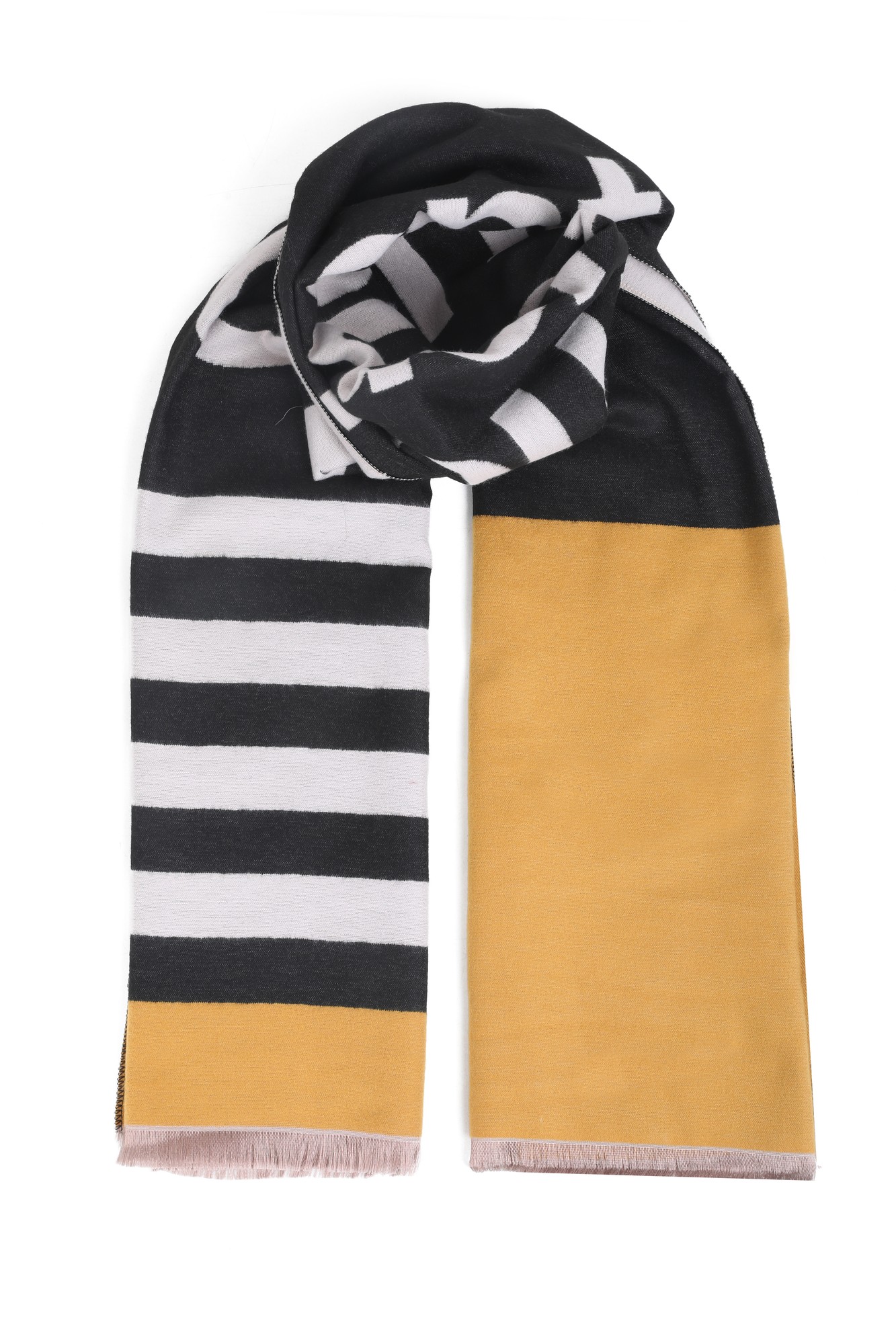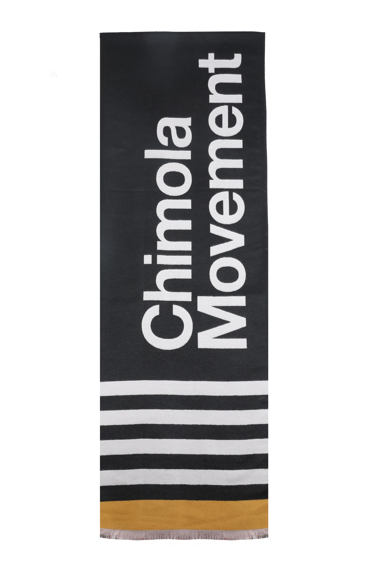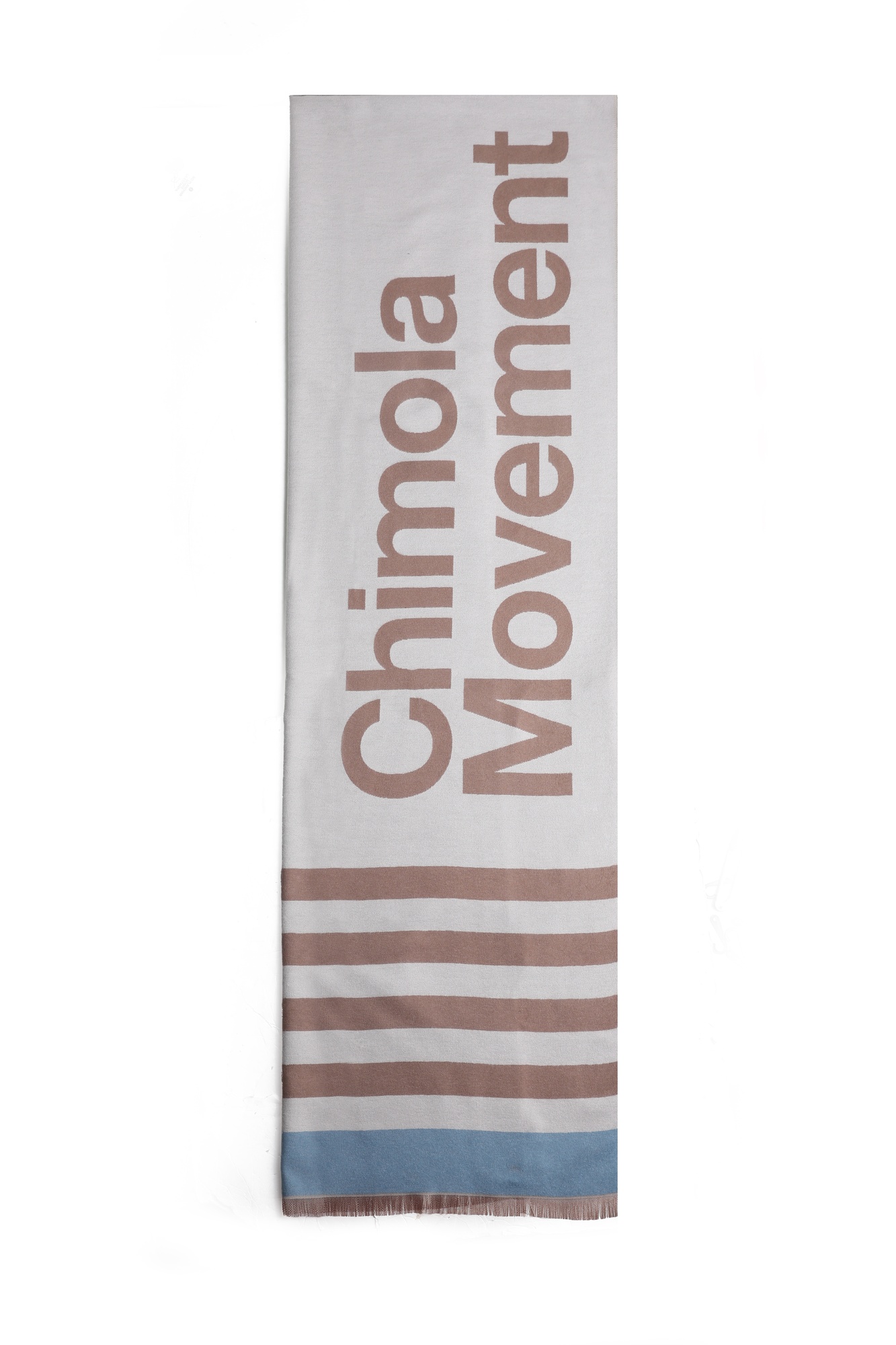 Descripción Bufanda de estilo urbano con tipografÃa protagonista y rayas clásicas; minimal, suave y fácil de combinar.