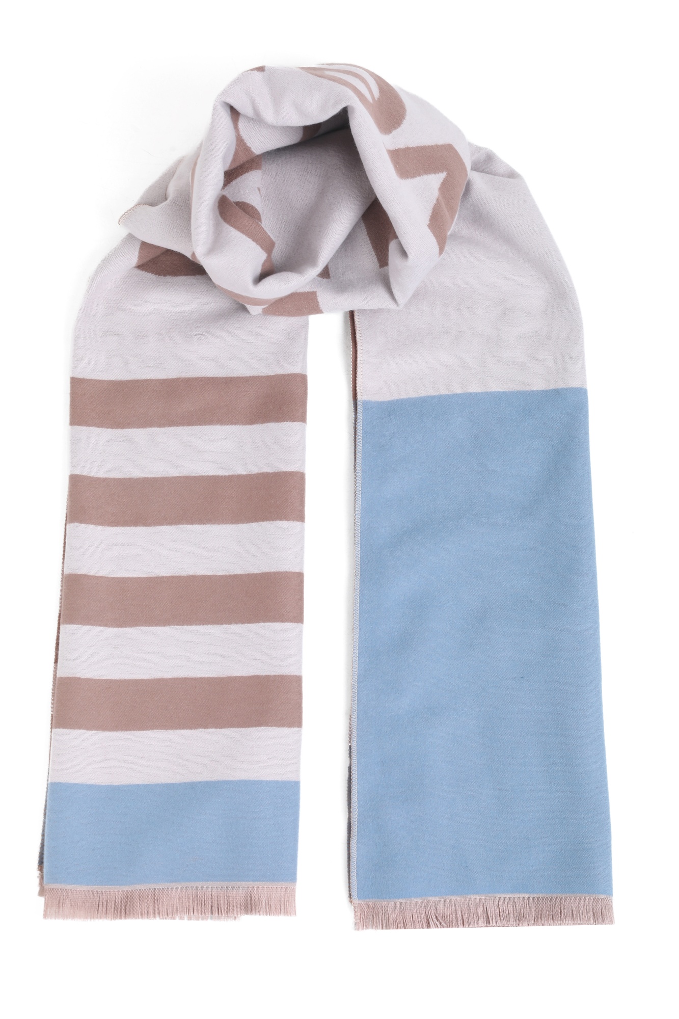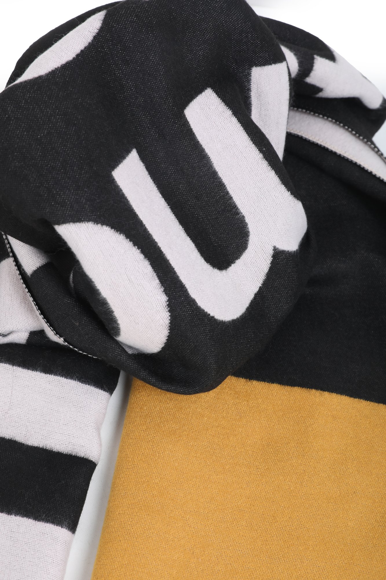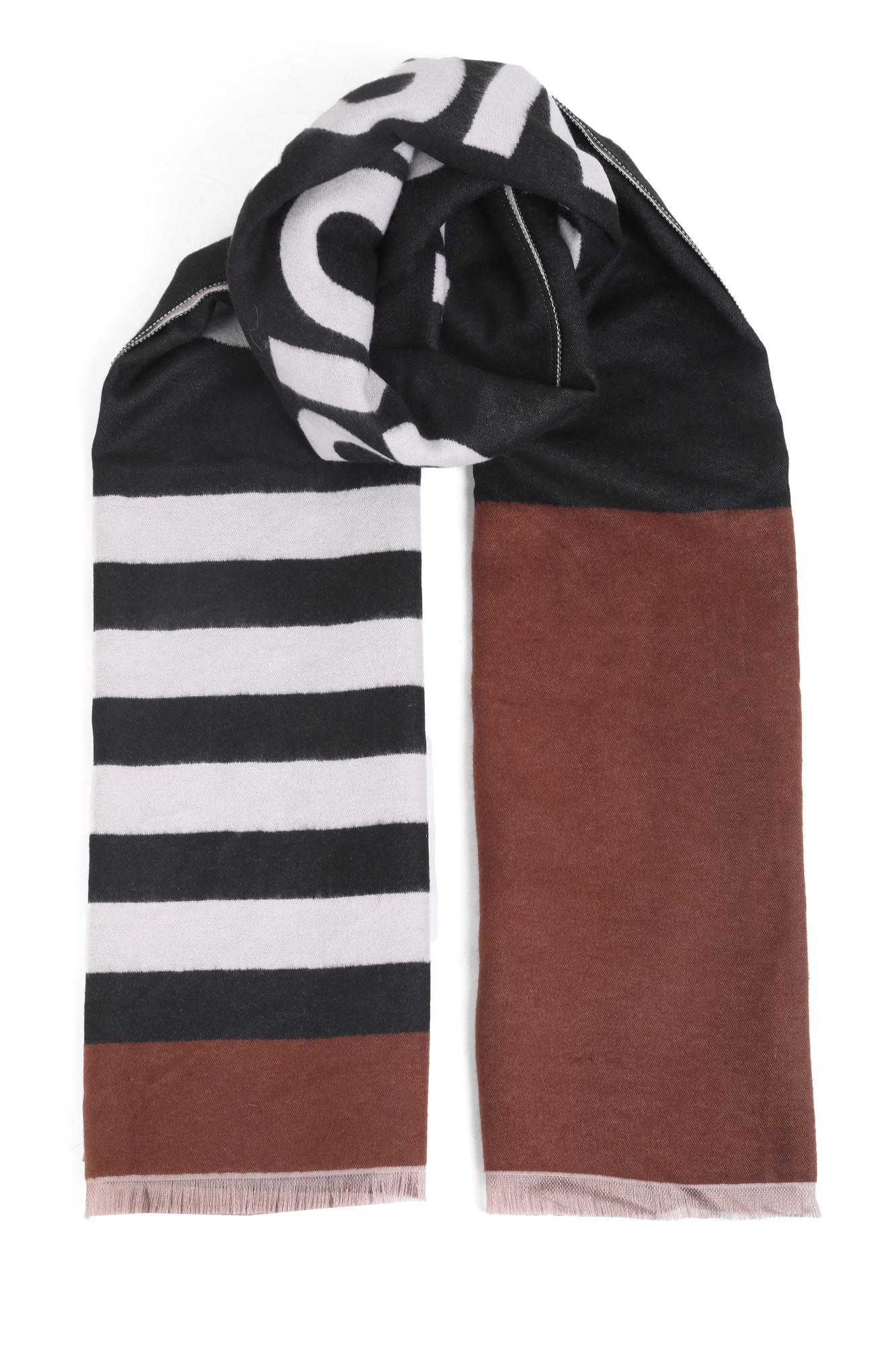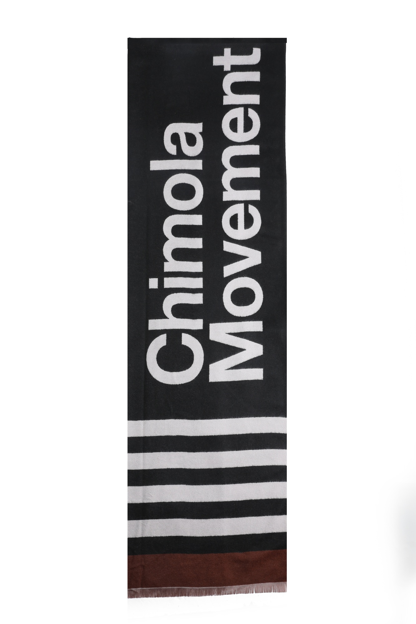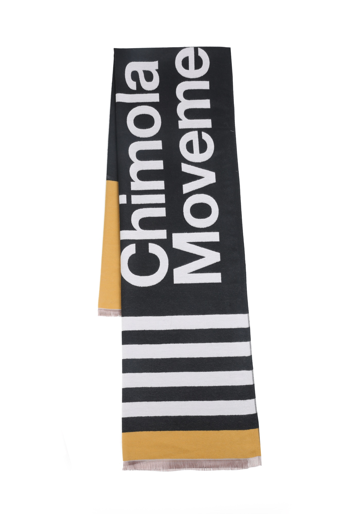 Descripción Bufanda de estilo urbano con tipografÃa protagonista y rayas clásicas; minimal, suave y fácil de combinar.