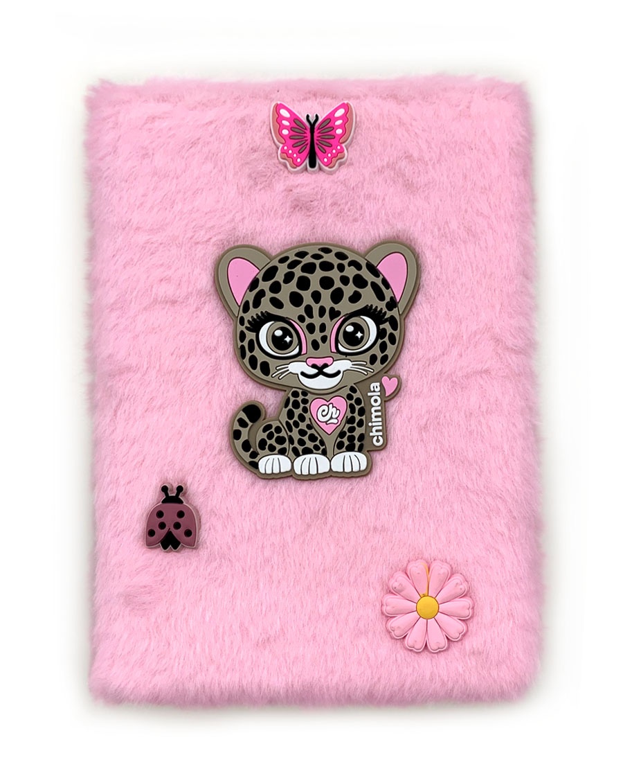 Para espÃritus salvajes pero adorables, Chita llega con mariposa, flor y catarina. Un combo que resalta su costado aventurero y femenino. Este adorable cuaderno A5 combina funcionalidad con diseño lúdico. Sus tapas rÃgidas recubiertas en plush ultra suave y decoradas con gomas temáticas lo convierten en un accesorio escolar único que invita al juego y la expresión creativa. Cuenta con un sistema de cierre con una goma decorativa frontal grande y tres gomas pequeñas intercambiables, todas vinculadas al personaje protagonista. Su interior ofrece hojas rayadas de papel bond para una escritura cómoda y resistente.