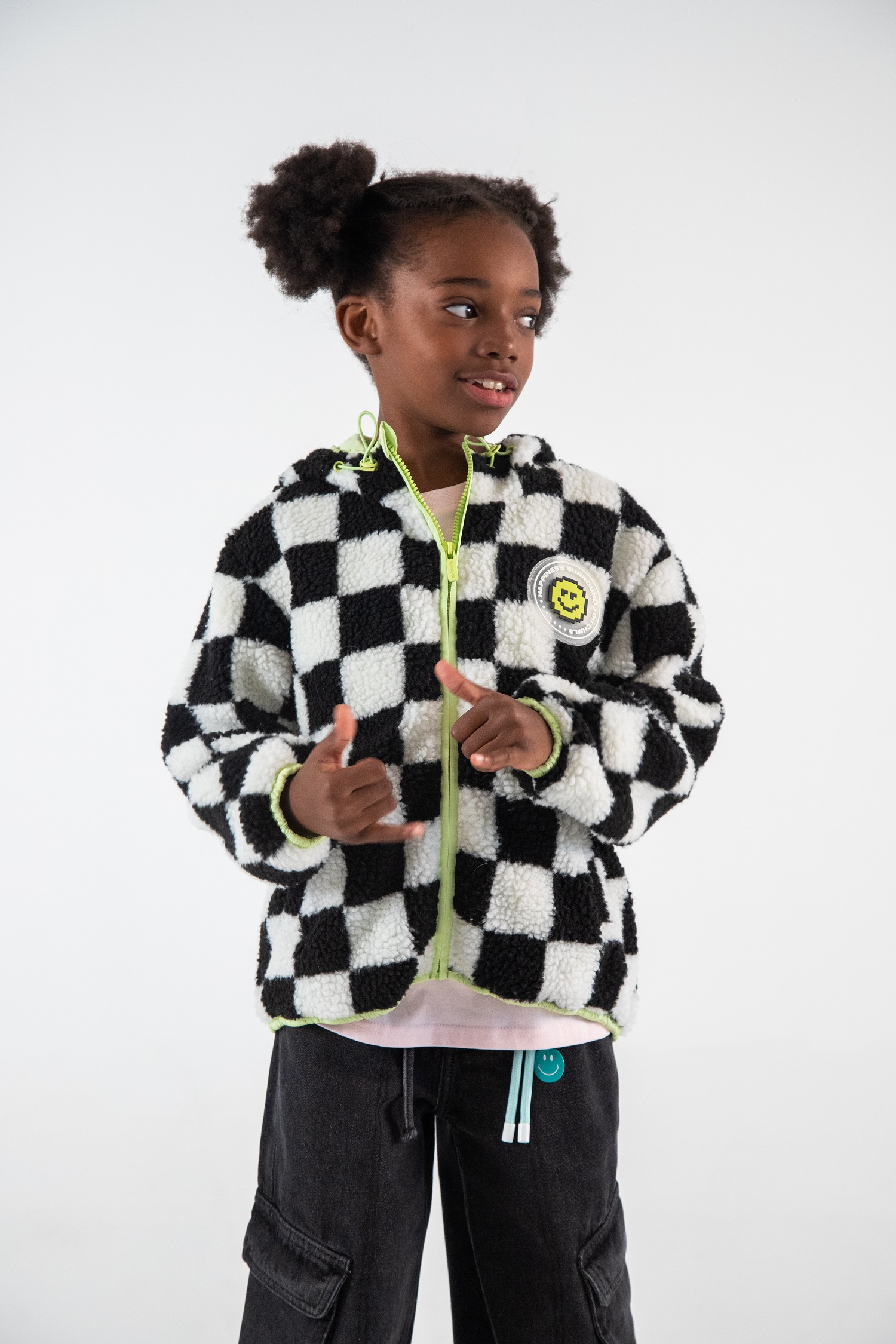 Descripción: Nuestro "Buzo Chloe" es la elección ideal para manterse abrigado y a la moda! Con un tierno aplique de goma en su parte delantera, y su diseño a cuadros, no te lo vas a querer sacar en todo el invierno! Composición 100% terylene. Lo encontrás en negro, rosa y lila. TABLA DE TALLE: A) Largo Delantero; B) Ancho de Hombros; C) Largo de Mangas. *T6: A) 47, B) 37,5 , C) 39 *T8: A) 50,5, B) 39, C) 43 *T10: A) 54, B) 40,5 , C) 47 *T12: A) 57,5, B) 42, C) 51 *T14: A) 61, B) 43,5, C) 55