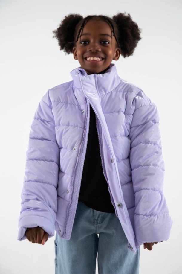 Descripción: Chimola te invita a soñar con la "Campera Regina". Su aplique de goma es el detalle que la hace tan especial y única. Compuesta en terylene, poliuterano y poliéster. TABLA DE TALLE: A) Largo Delantero; B) Ancho de Hombros; C) Largo de Mangas. T4: A) 41, B) 38, C) 35,5. T6: A) 47, B) 40, C) 38,5. T8: A) 51, B) 42, C) 42,5 . T10: A) 55, B) 44, C) 46,5. T12: A) 59, B) 46, C) 50,5.