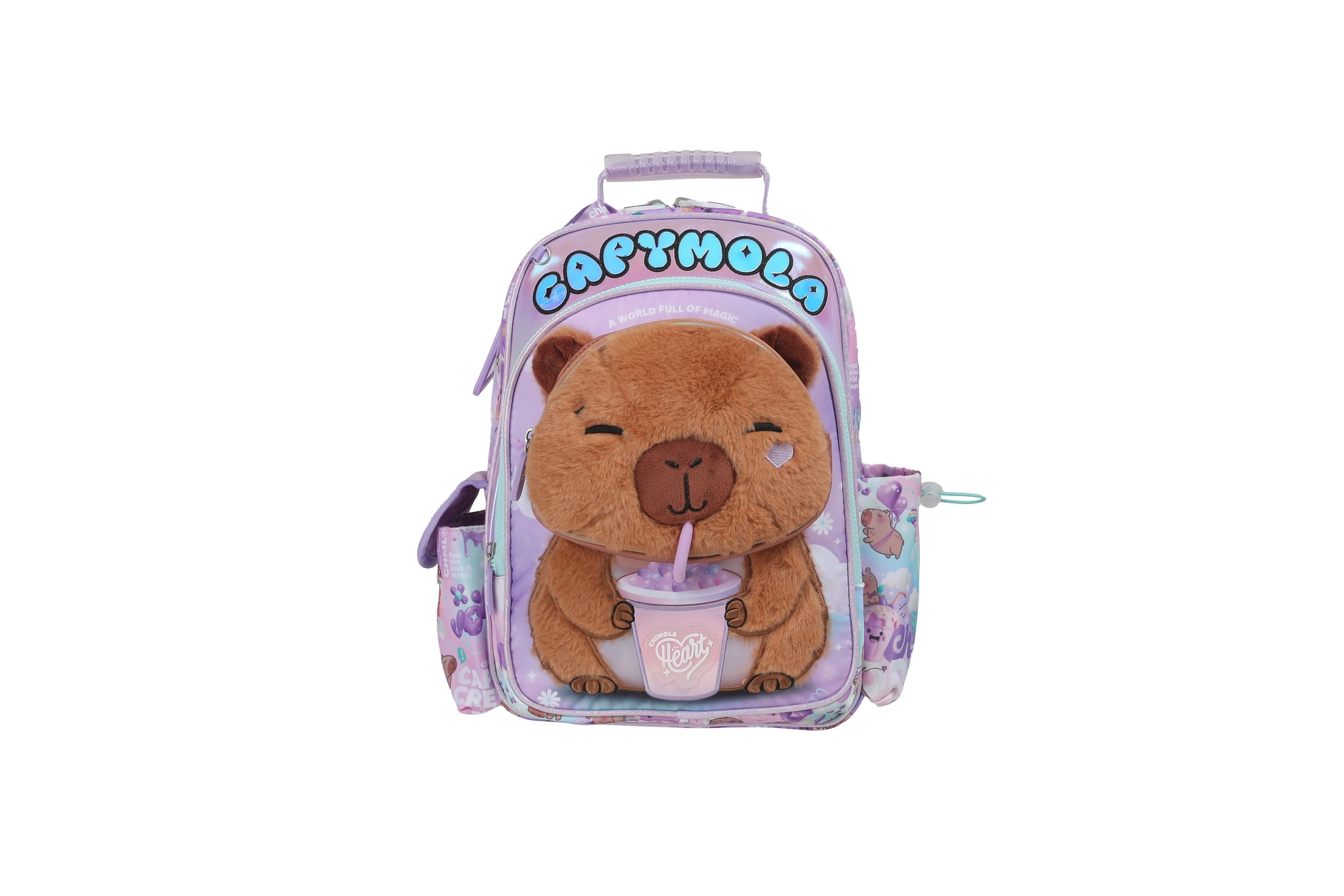Inspirada en un universo lleno de cielos de colores y smoothies mágicos, esta mochi combina funcionalidad con una estética súper sensorial. Su carita en 3D con textura peludita y relleno suave invita al juego, mientras que el sorbete tridimensional y los toques brillantes le suman un estilo divertido y moderno.