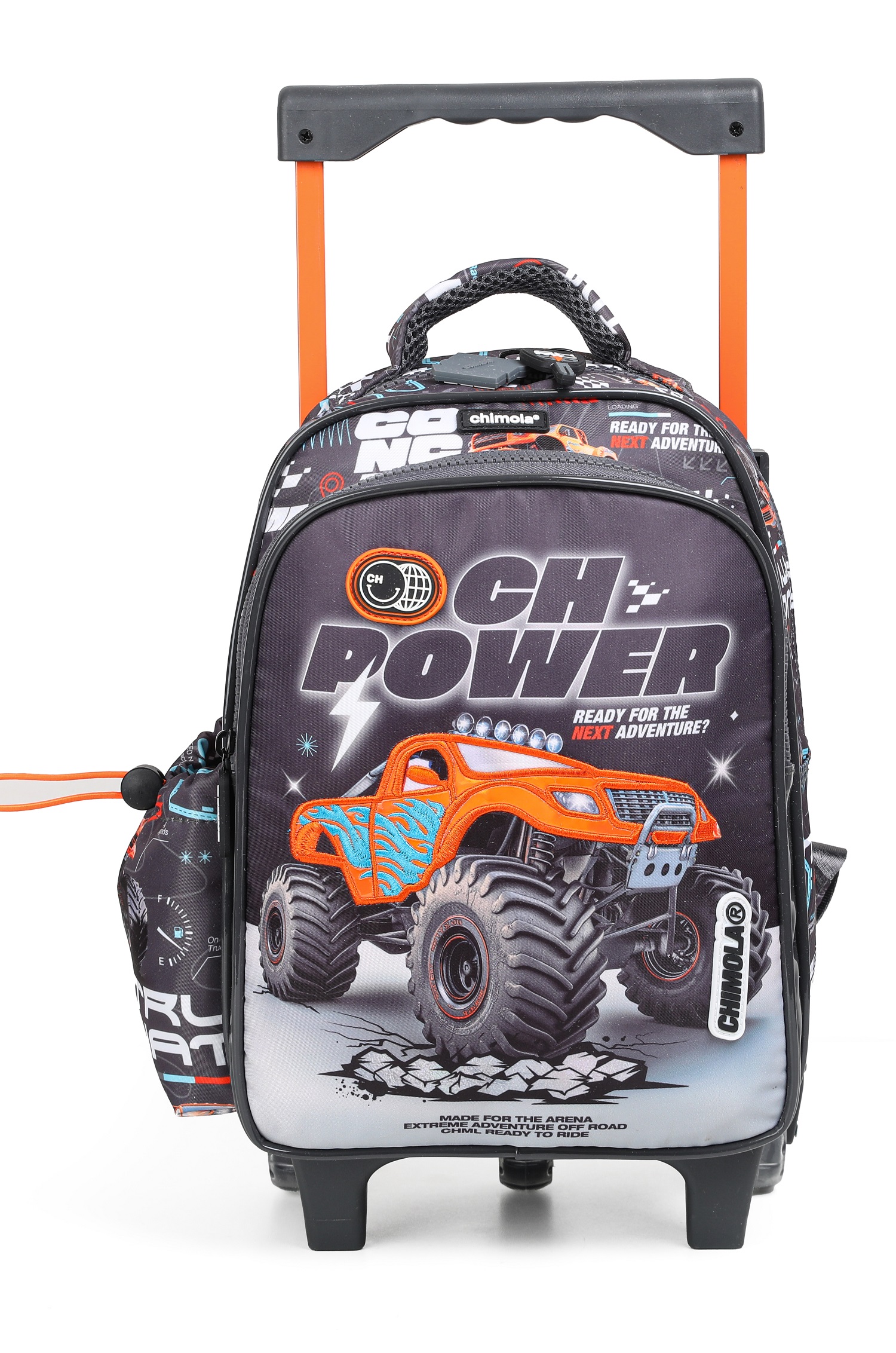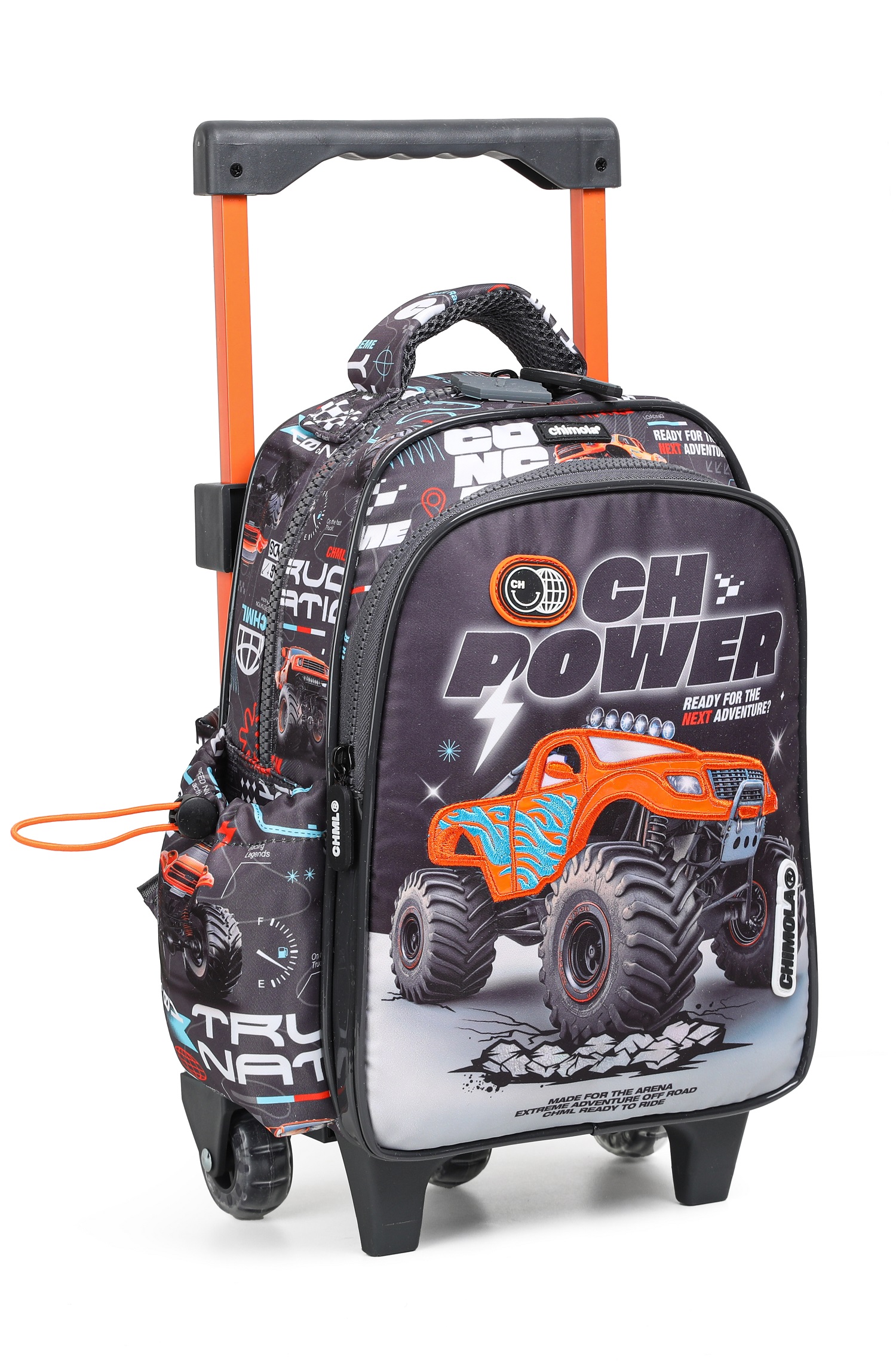 Descripción: ¡Preparate para vivir una experiencia al lÃmite! Diseñada para los pequeños aventureros que buscan emociones fuertes, nuestra nueva mochila Truck captura la adrenalina y la potencia de las camionetas Monster Truck. Con estampas de geolocalización que te transportan a terrenos salvajes y desafiantes, cada detalle despierta tu espÃritu de aventura y acción. Nuestra mochi de 12" es perfecta para preescolar ya que tiene 1 compartimiento principal grande y 1 compartimiento frontal secundario que permiten organizar todo lo necesario sin perder comodidad para transportar. Además, cuenta con dos bolsillos laterales, uno regulable y otro con red para la botella. Posee un carro reforzado extensible a tono y además cuenta con 3 ruedas de silicona que proporcionan un andar cómodo y ligero.