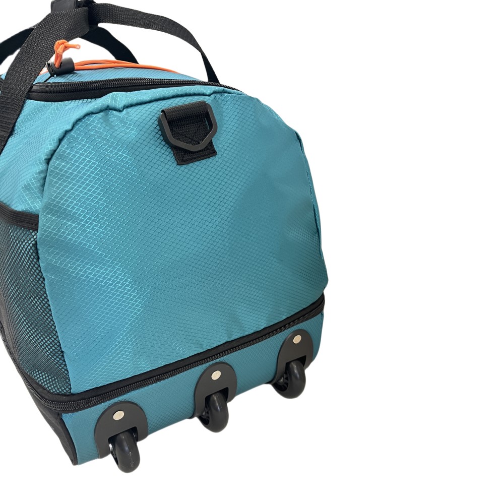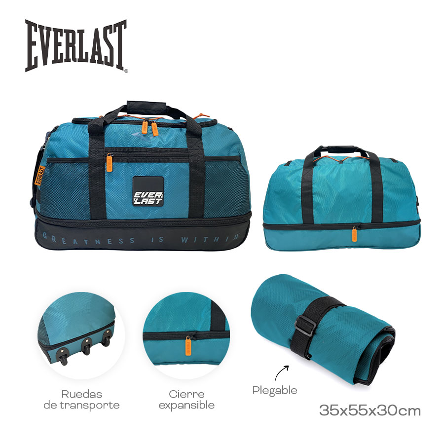 Descripción: Material: poliéster. Capacidad: 60L. Con correa de hombro ajustable. Medidas: 35cm de alto x 30cm de profundidad x 55cm de ancho. Con ruedas. Es plegable.