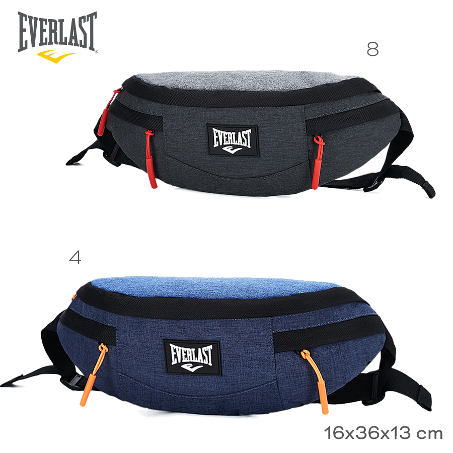Descripción: Riñonera Everlast 21758. -Material: 100% Nylon. -Medidas: 16 cm alto x 36 cm ancho x 13 cm profundidad. -Contiene: Un bolsillo principal, dos bolsillos frontales, tira ajustable hasta 120 cm. -Interior forrado con el logo de la marca.