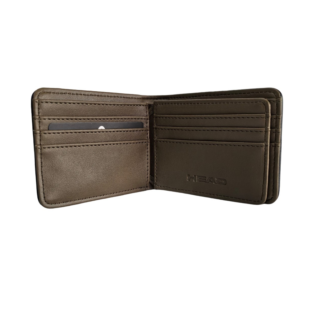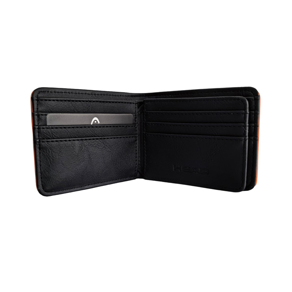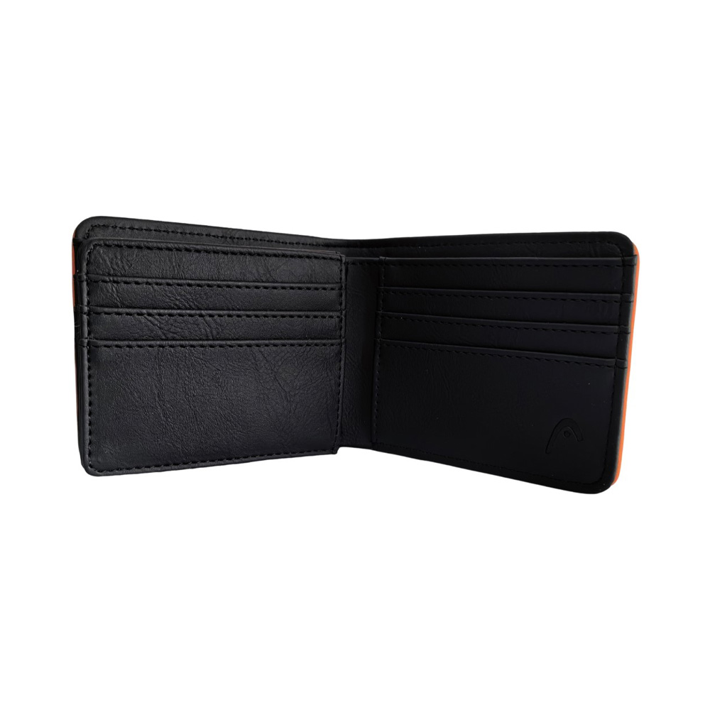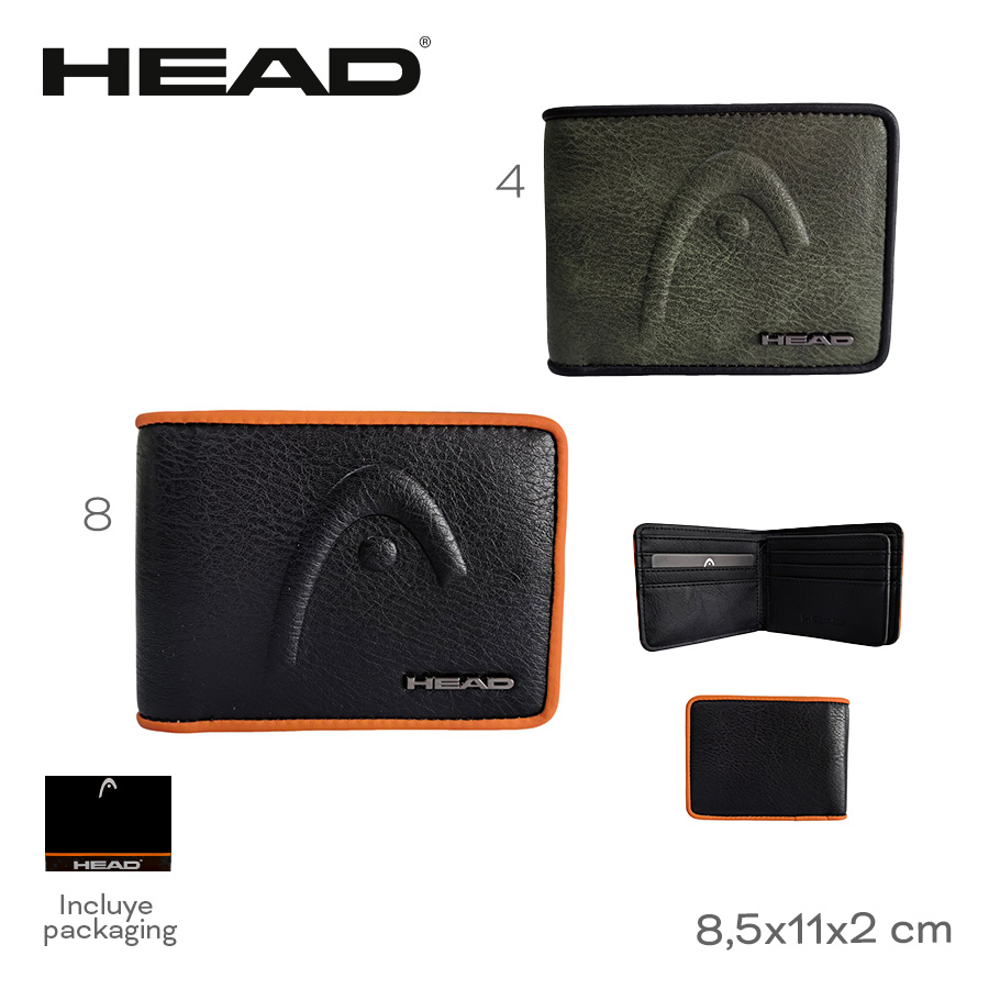 Descripción: Billetera Head. Diseño que combina estilo y practicidad. Esta billetera es ese must-have que se adapta a tu rutina. Perfecta para el dÃa a dÃa. Info clave del producto: Medidas: 8,5 cm de alto x 11 cm de ancho x 2 cm de profundidad. Estilo: Billetera de dos cuerpos. Material: SÃmil cuero PU. Posee un compartimiento principal porta billetes. Un volante interno con porta tarjetas y/o credenciales. Varios tarjeteros a los lados. -Incluye Packaging.