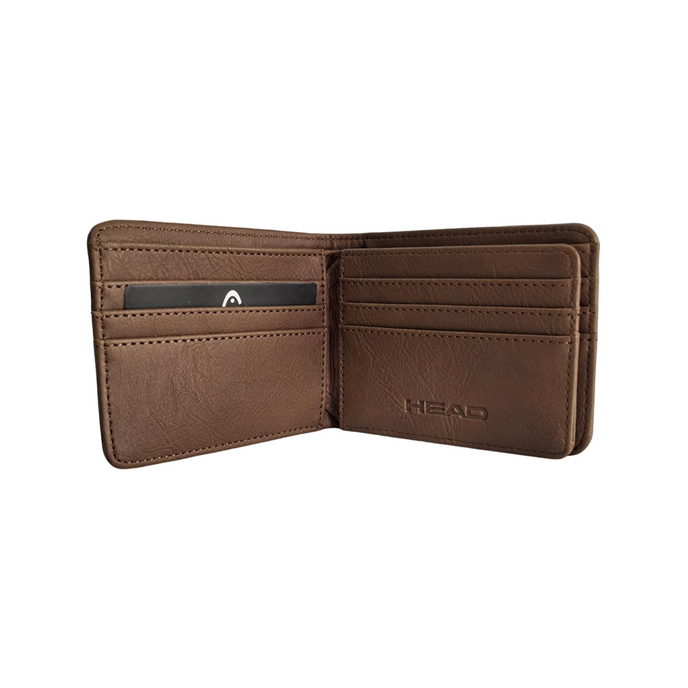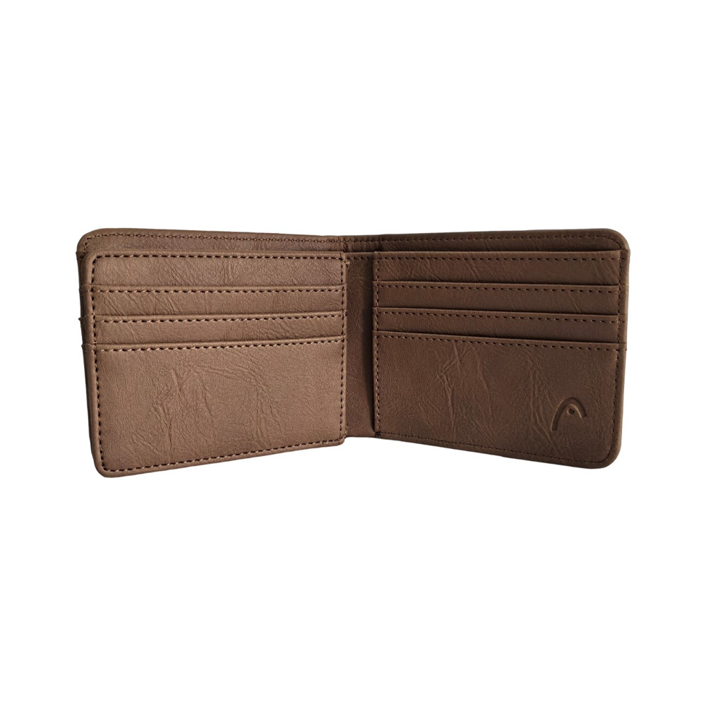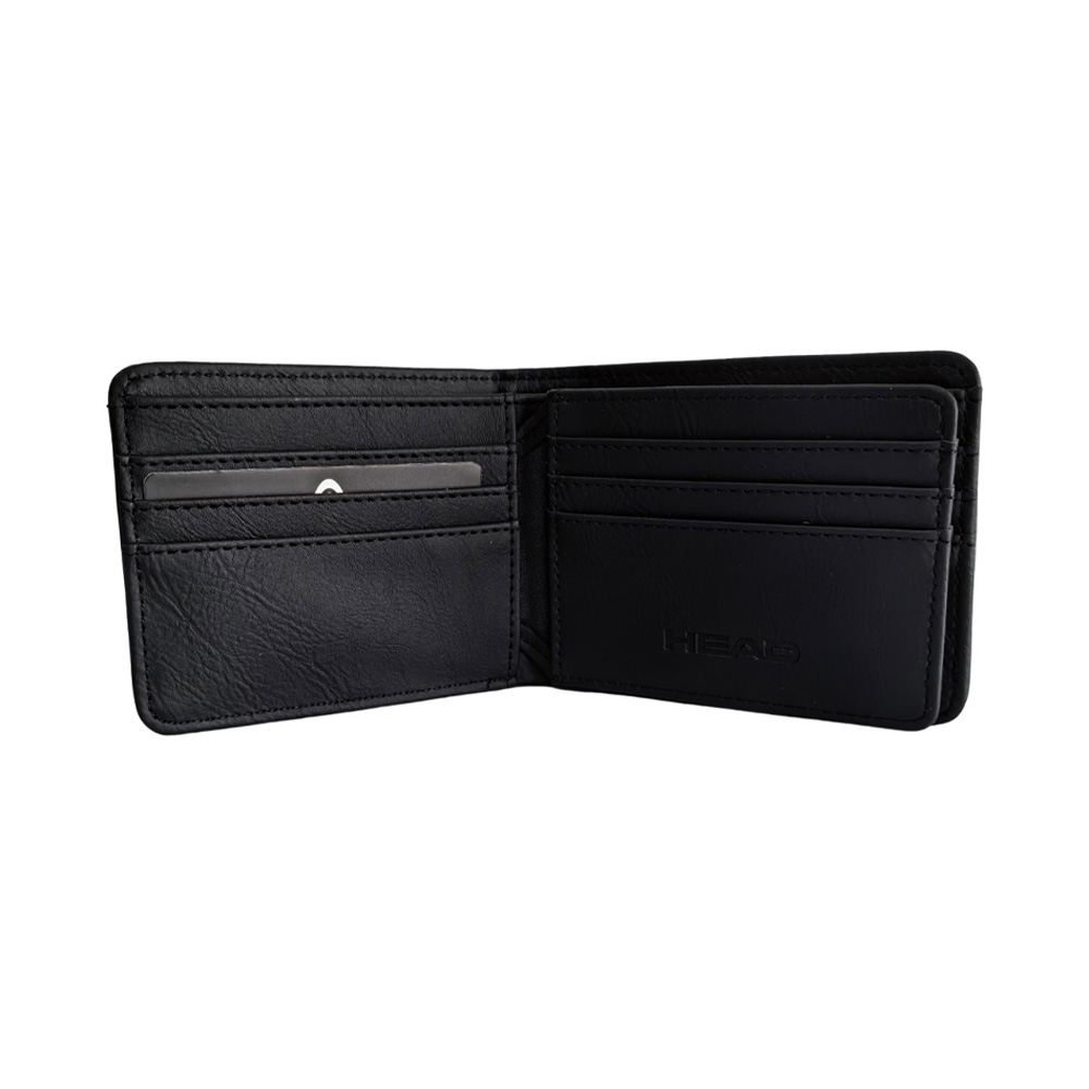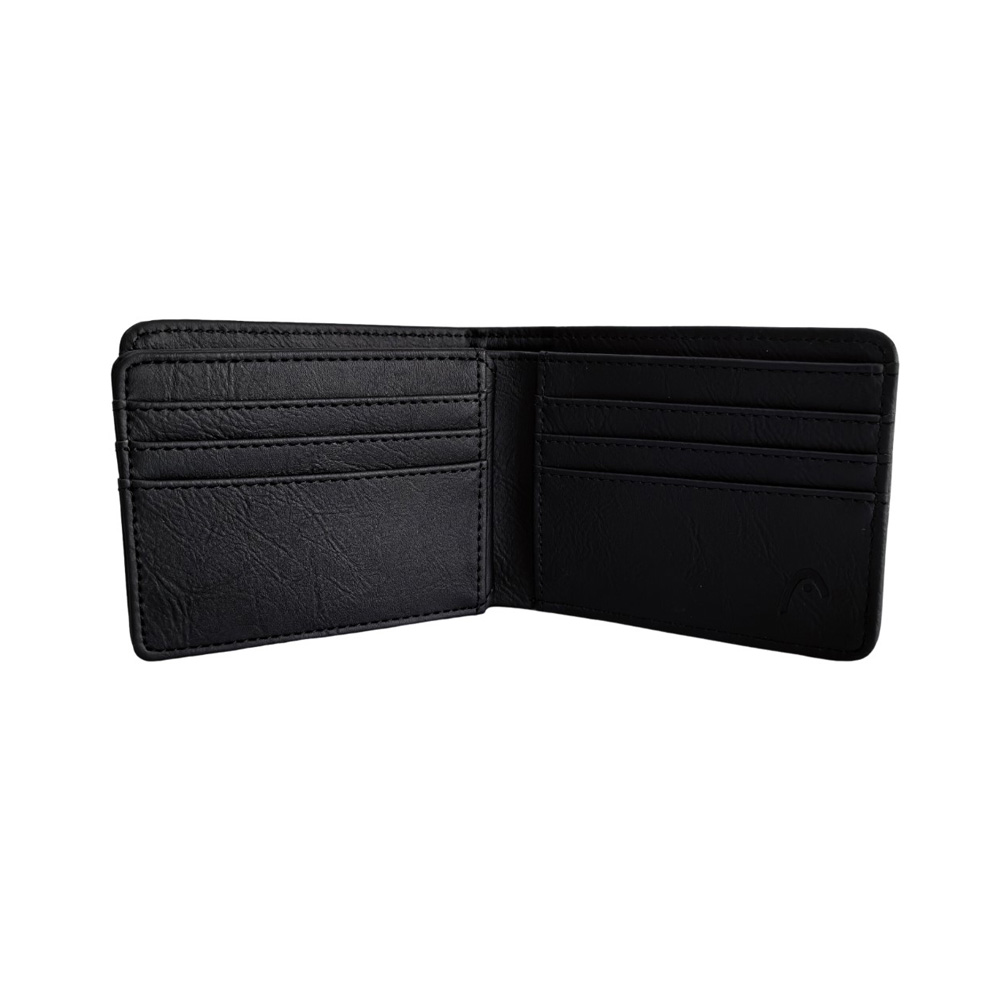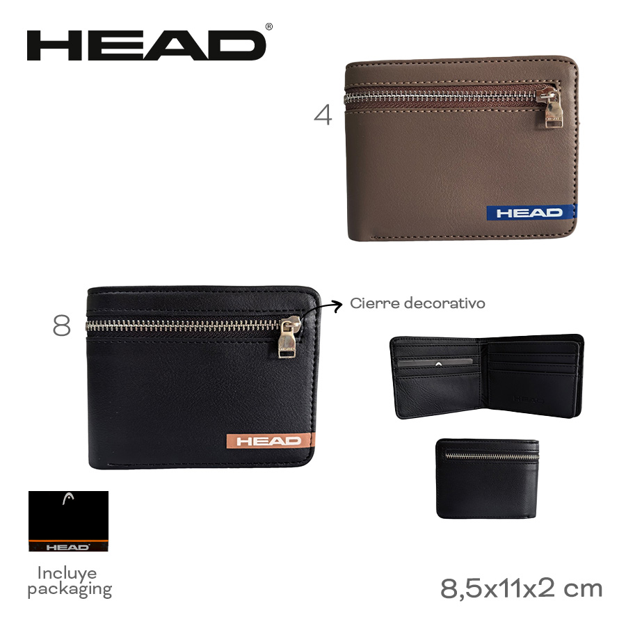 Descripción: Billetera Head. Diseño que combina estilo y practicidad. Esta billetera es ese must-have que se adapta a tu rutina. Perfecta para el dÃa a dÃa. Info clave del producto: Medidas: 8,5 cm de alto x 11 cm de ancho x 2 cm de profundidad. Estilo: Billetera de dos cuerpos con cierre decorativo. Material: SÃmil cuero PU. Posee un compartimiento principal porta billetes. Un volante interno con porta tarjetas y/o credenciales. Varios tarjeteros a los lados. -Incluye Packaging.