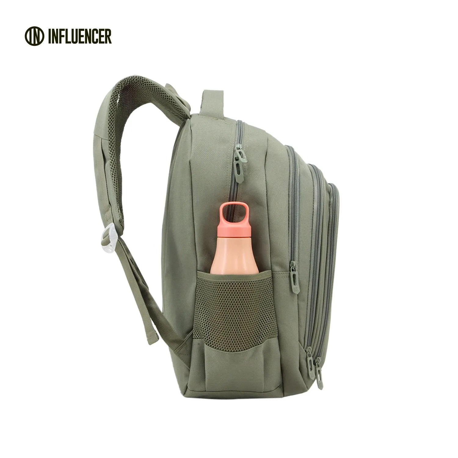 Dos bolsillos laterales de tela red ajustables.