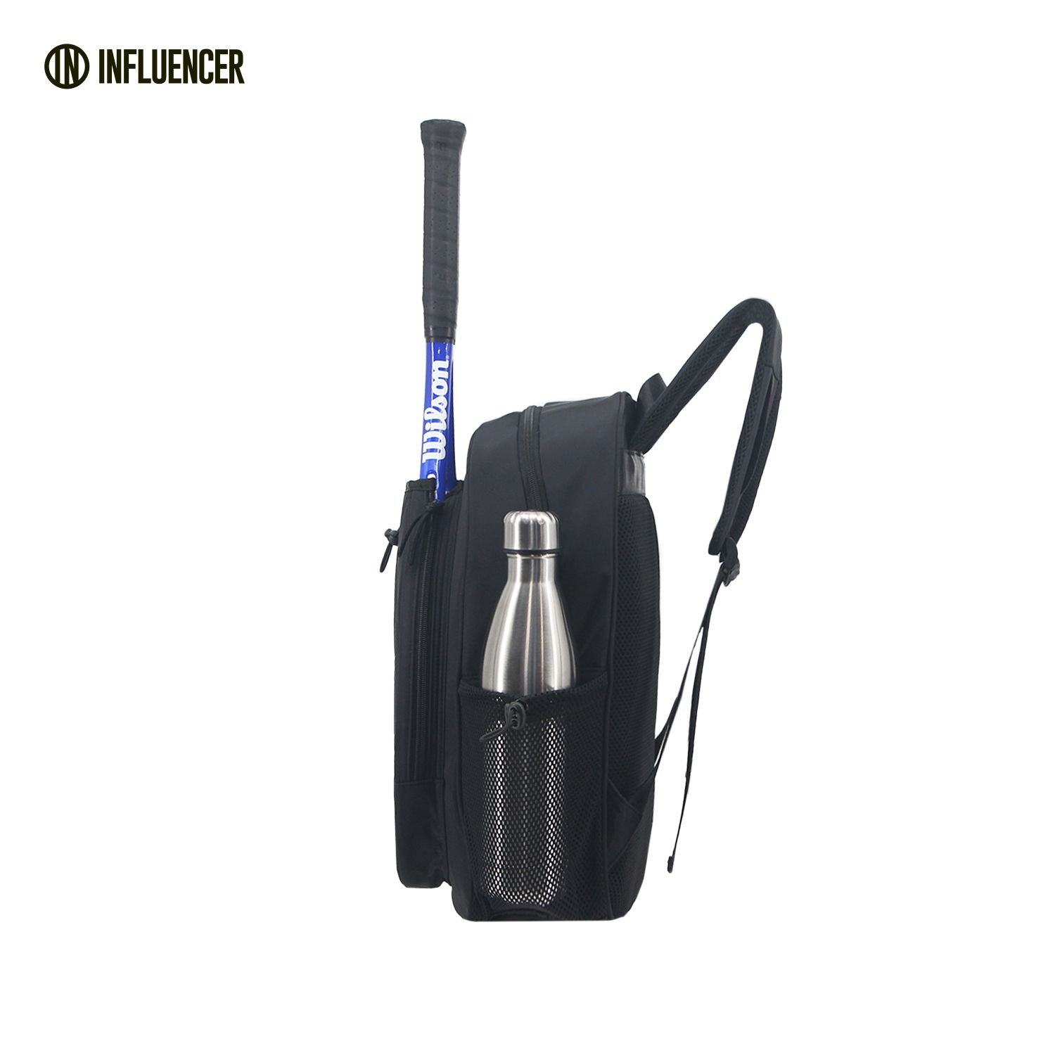 Bolsillo lateral con mesh para llevar botella.