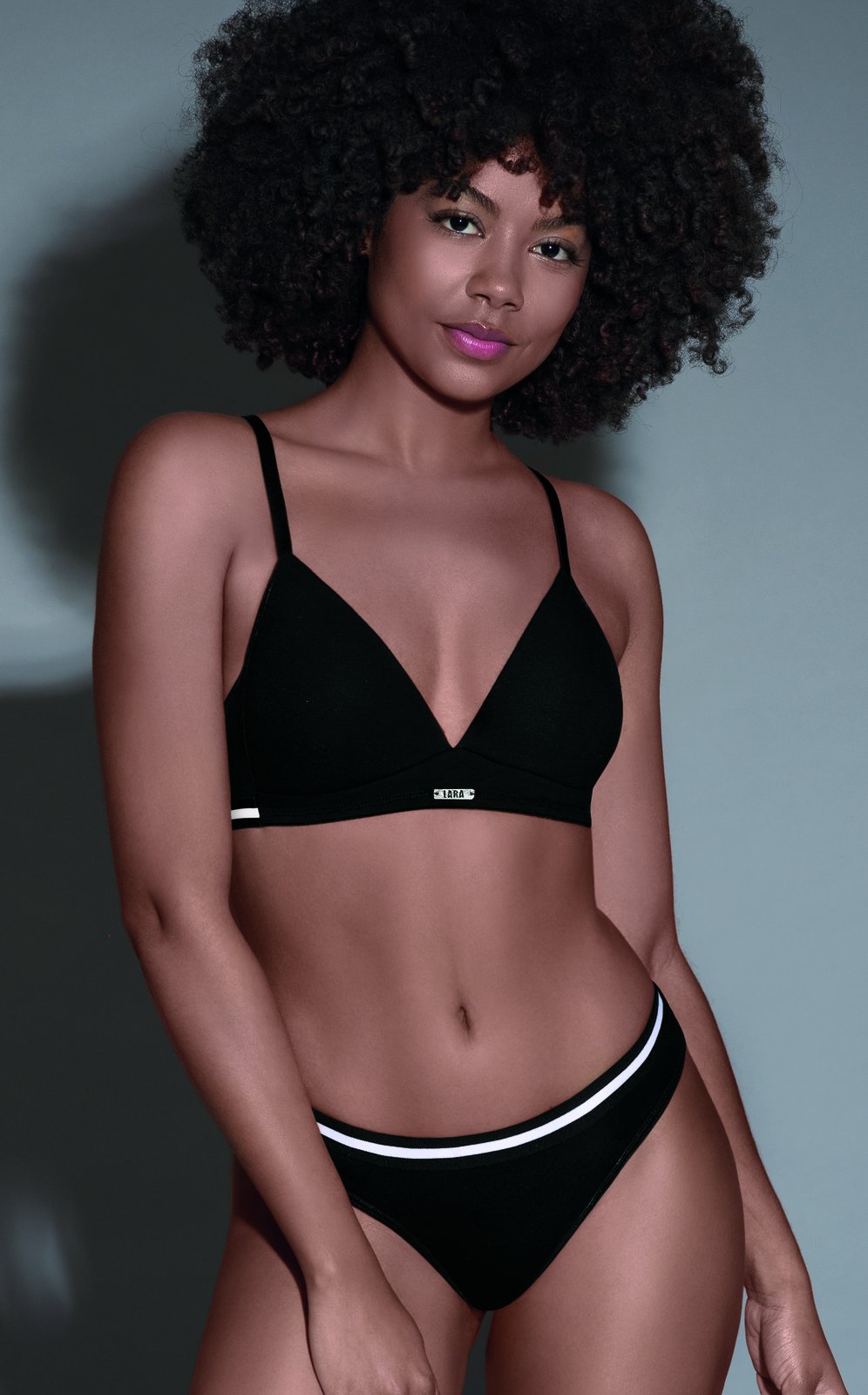 Descripción: Material: Algodón y Lycra. Conjunto de Algodón y Lycra Liso Lara Teens modelo 4680, diseñado para ofrecerte la máxima comodidad y estilo. Este conjunto incluye un corpiño triángulo soft sin push up y una colaless, ambos con un elegante dije chapita y elástico de dos tonos.