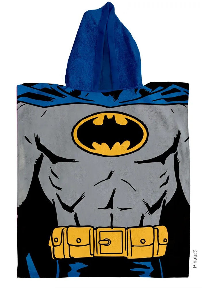 Descripción: Poncho de toalla Batman Los ponchos Piñata® ofrecen la máxima comodidad, calidez, suavidad y diverSÍón para que los mas chiquitos puedan jugar, abrigarse y secarse al mismo tiempo. Su capucha ayuda a secar el cabello más rápido. Ideales para la playa, piscina o después del baño en casa. Nuevo tamaño, más amplio y cómodo!! Secado súper rápido! Medida de hombros 50 cm; x 60cm de largo (de hombro a rodillas) Medida total: 50 x 120 cm. Licencia oficial WARNER CompoSÍción: 100% Poliéster