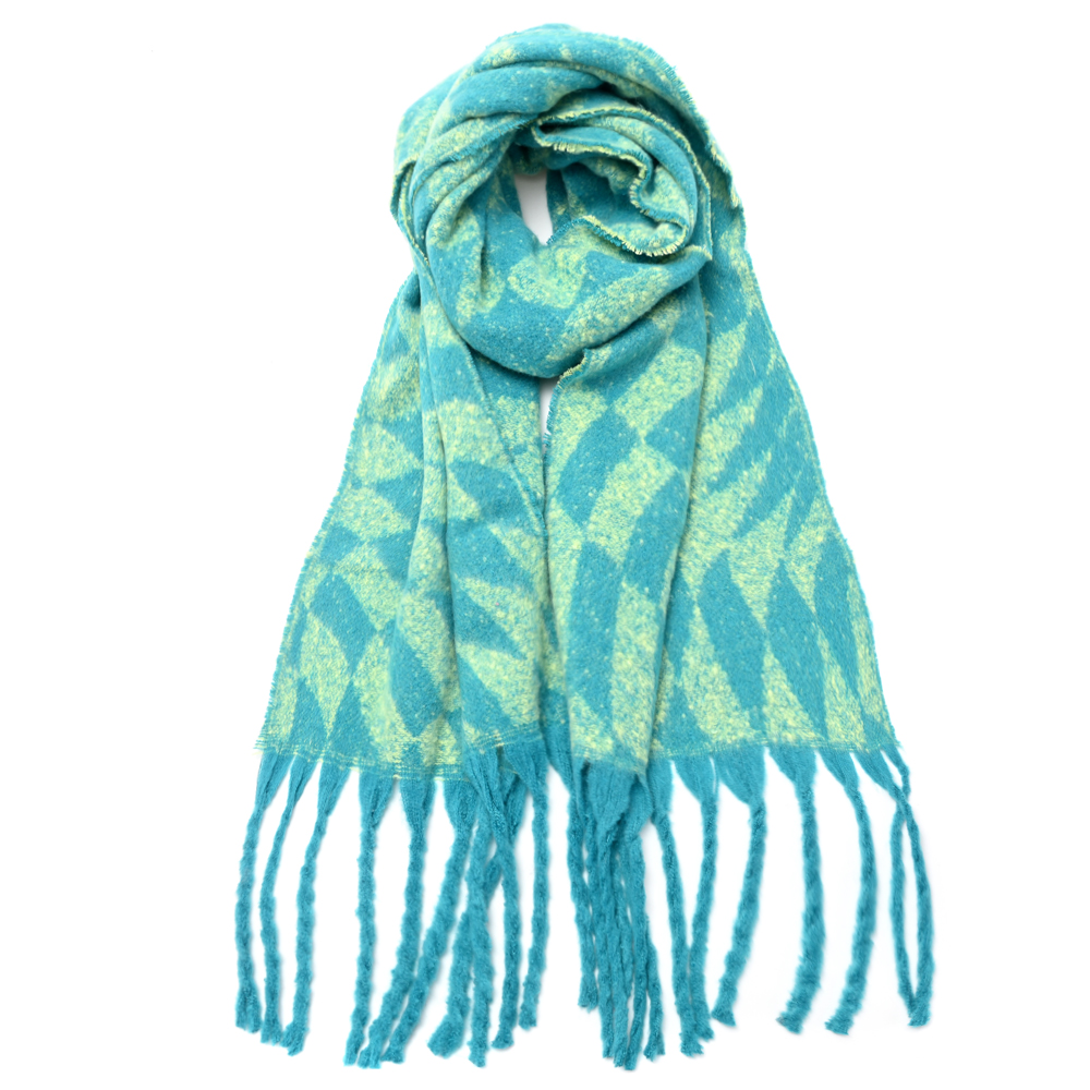 Ruana diseño geometrico con flecos