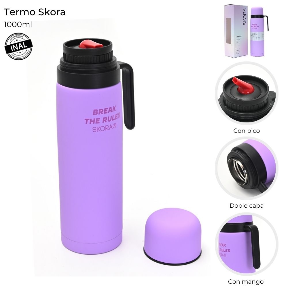 Descripción: Marca Skora Tipo Con tapa Material Acero Linea Smile Medida 1000 ml