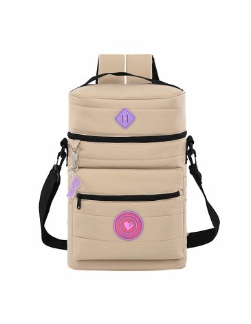 Descripción: Bolsillo frontal, correa desmontable, llavero desmontable, tiras con tela mesh, cap. termos 1,5L 37 cm x 20 cm x 12cm