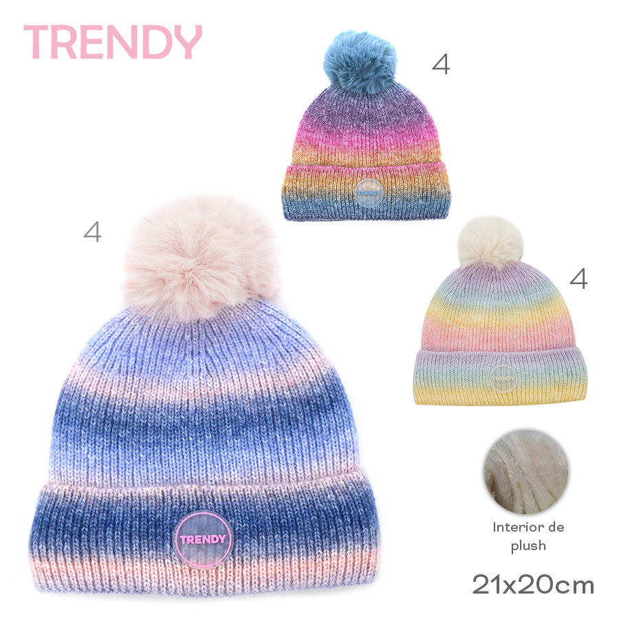 Descripción: Material exterior: Fabricado en 100% acrÃlico, ofreciendo calidez, suavidad y durabilidad. Dimensiones: Un tamaño de 21 cm de alto y 20 cm de ancho, proporcionando un ajuste cómodo y seguro. Forro interior: Equipado con tela polar, brindando una capa adicional de calor y confort. Diseño con estilo: Incluye un pompón decorativo, añadiendo un toque de moda y diversión. Uso versátil: Ideal para actividades al aire libre, deportes de invierno y uso diario en climas frÃos. El Gorro Trendy es una excelente opción para mantenerte abrigado y a la moda durante la temporada de invierno.