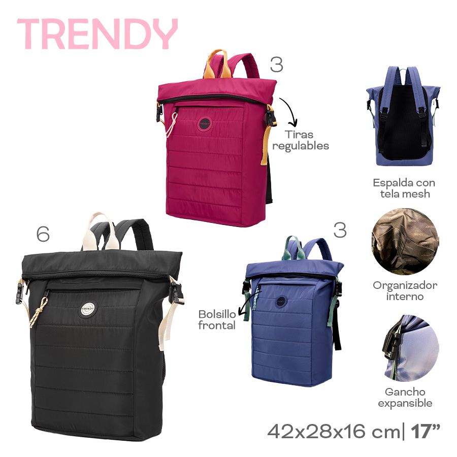 Descripción: Material: 100% poliéster, resistente y liviano. Espalda acolchada, brindando confort en su uso prolongado. Diseño y Funcionalidad. Un asa de transporte, ideal para colgar o llevar en la mano. Un bolsillo frontal, perfecto para organizar objetos esenciales. Sistema de cierre seguro, ofreciendo protección para tus pertenencias. Ventajas del Producto. Diseño ergonómico y cómodo, con soporte acolchado. Material duradero y fácil de limpiar, ideal para el uso diario. Gran capacidad de almacenamiento, sin perder ligereza. Estilo urbano y moderno, adaptable a múltiples ocasiones.