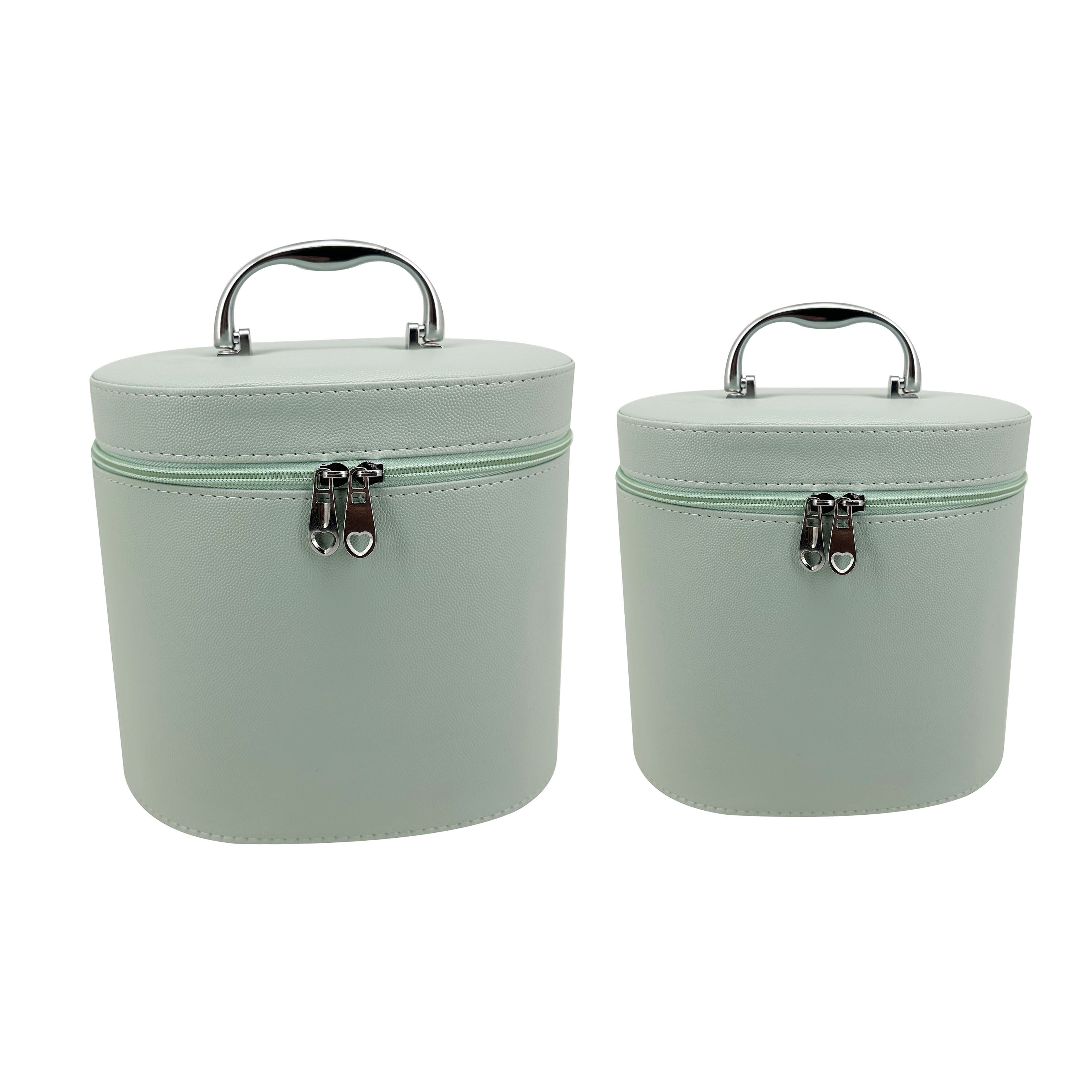 Descripción: · Confeccionado en 100% Cuero PU. · Incluye espejo en la tapa del organizador. · Un amplio compartimiento principal. El set de 2 organizadores Trendy es el complemento perfecto para mantener todas tus joyas y accesorios en orden mientras le das un toque de elegancia a tu espacio. Diseñados con un estilo moderno y funcional, estos organizadores son ideales para guardar anillos, collares, pulseras, aros y más, evitando que se pierdan o dañen. · Asa de transporte. · Sin compartimientos internos. · Interior forrado con felpa. · Cierres reforzados. · Zippers metálicos. · Diseño colorido. · Material resistente. · Ideal para guardar anillos, collares, pulseras, aros y más. · Medidas grande: Alto 22cm x Ancho 17cm x Prof. 20cm. · Medidas pequeño: Alto 19cm x Ancho 15cm x Prof. 18cm.