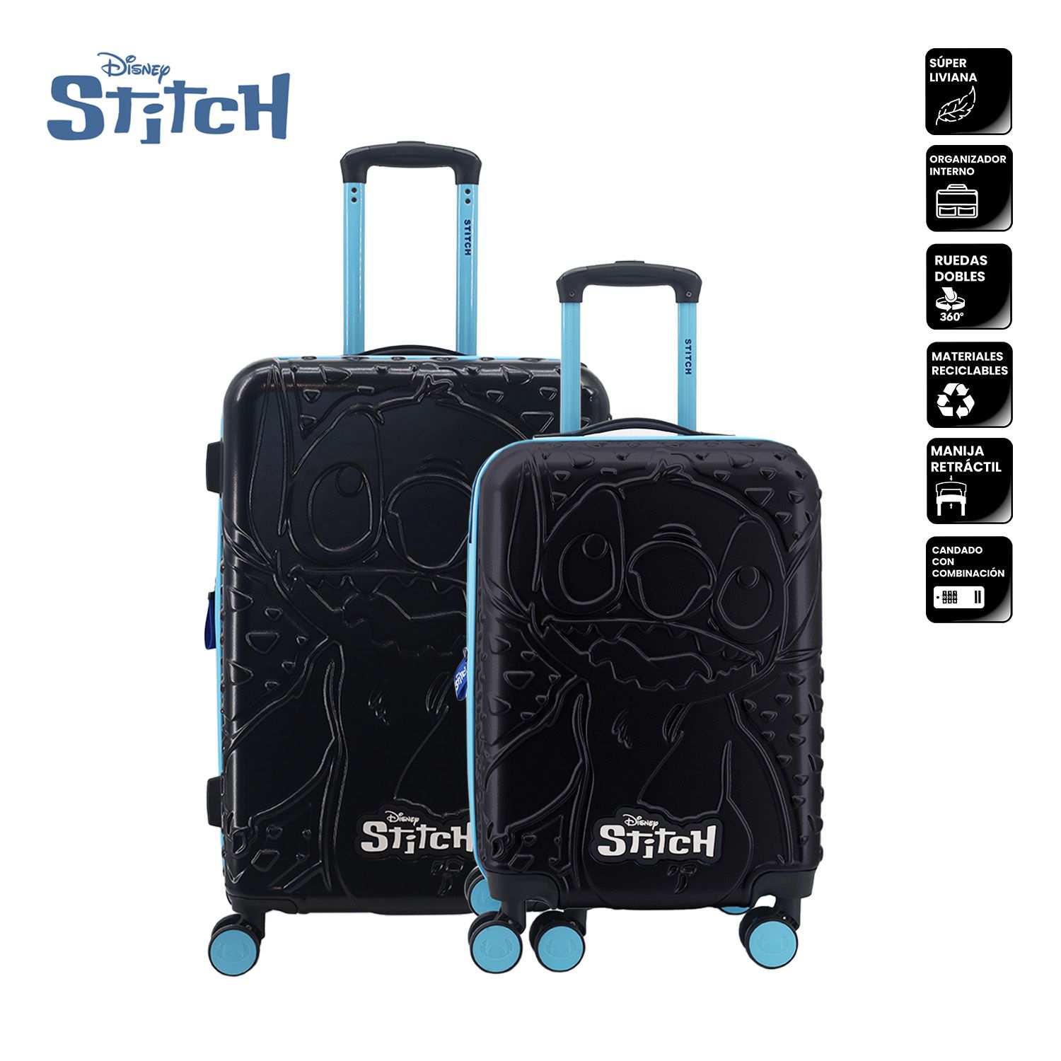 - Diseño con relieve frontal de Stitch.